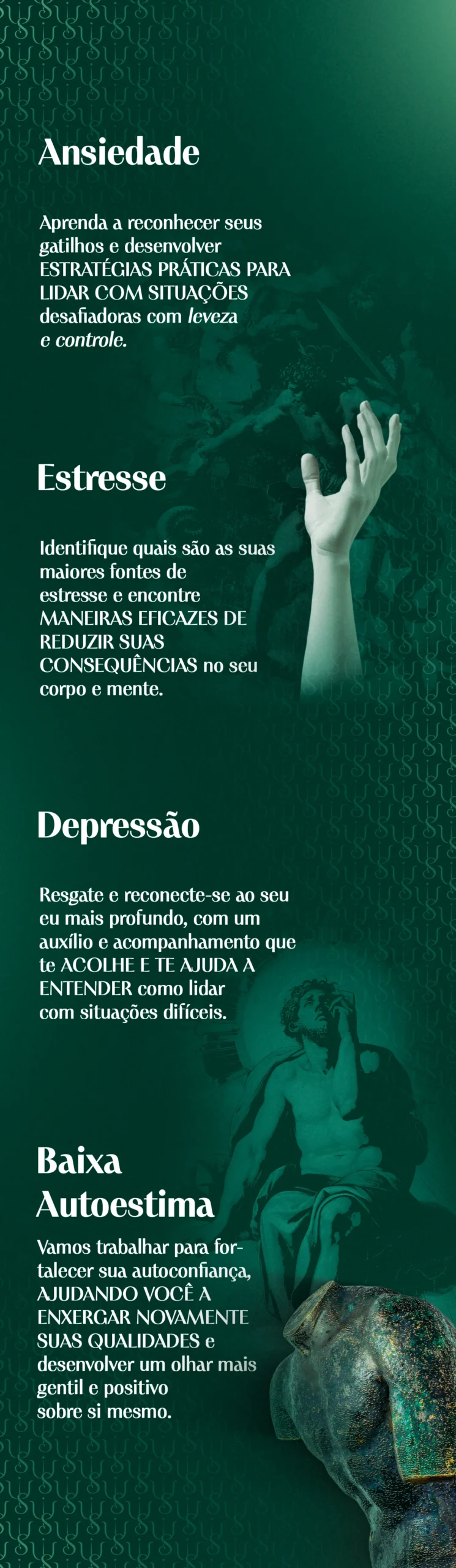 Com base na nossa conversa, agendaremos a primeira consulta, com um atendimento online, no conforto da sua casa, e ajustado à sua rotina, tudo isso no seu tempo e respeitando o seu processo.